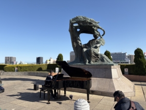2026年3月14日(土) 雲一つない鮮やかな青空のもと、アクトシティ浜松「ショパンの丘」に一日限定でグランドピアノを設置し、「ショパンの丘のピアノコンサート」を開催しました。