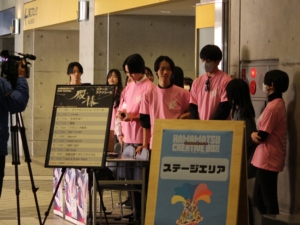 ライブ開始前の舞台裏では、実行委員と出演者が集まって円陣を組み、気合を入れていました。